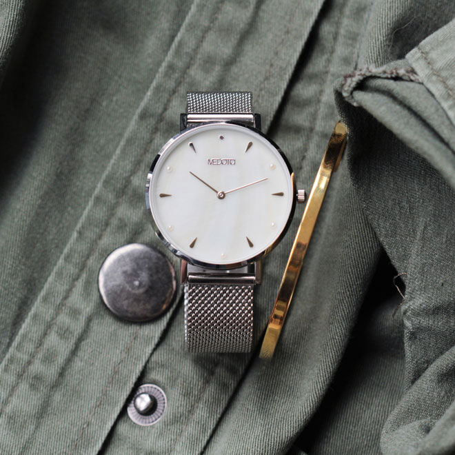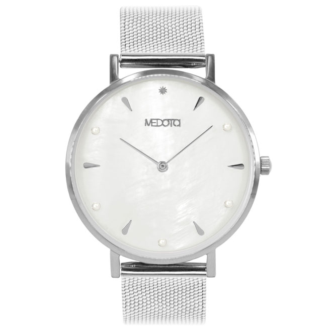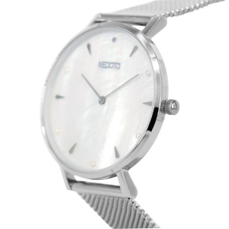 Design ideal of THETIS collection is from the ocean, the surface is made from shell and used beautiful pearl embellish watch. Case and strap is stainless steel.
