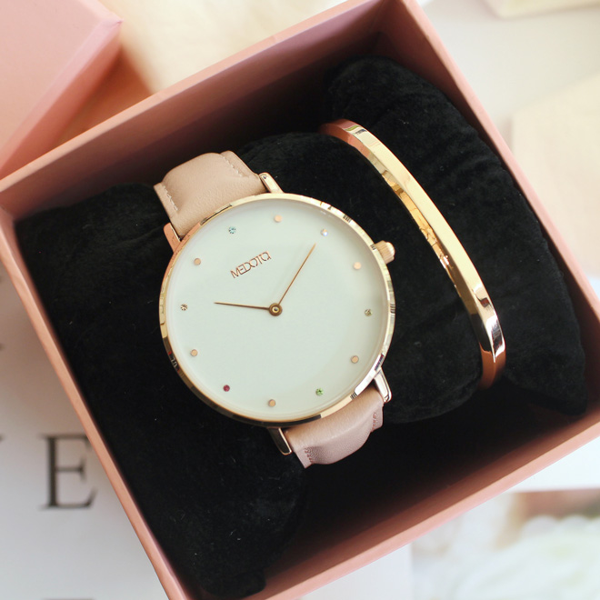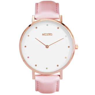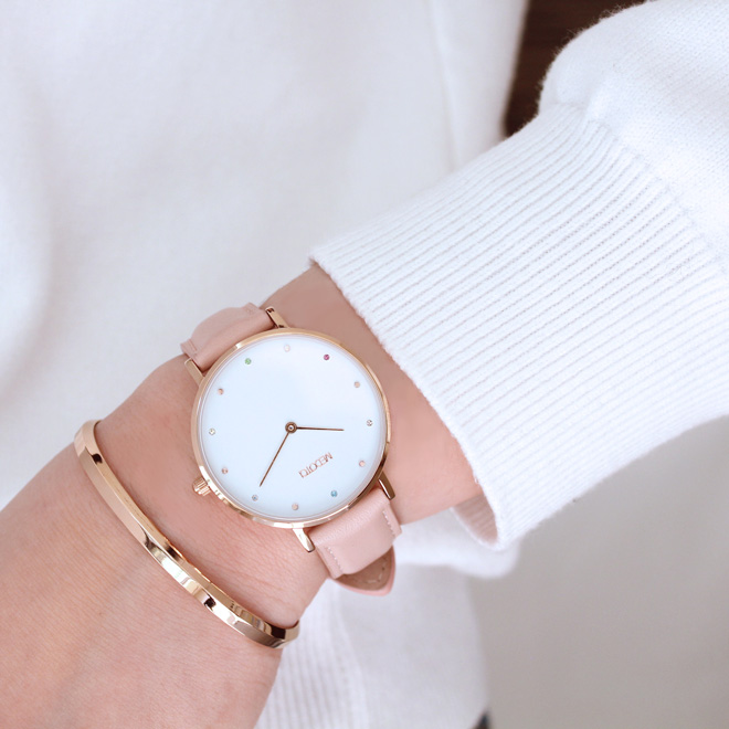 RAINBOW collection used diamond from Czech, the circle diamonds is lovely embellish on white surface with pink strap, show the style of cute ladies.