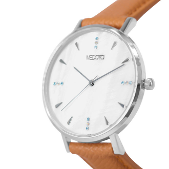 GLITTER collection surface is made from shell and diamond, the strap used leather strap that looks wonderful and stylish.