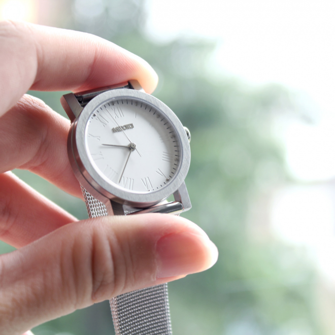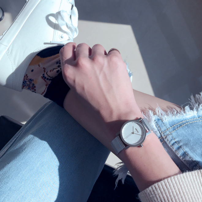 Design of Minimalism, under the elegant clean surface and dent's Roman numerals and meticulous production process into a stainless steel case with a pointer and convey the meaning of original and simple.